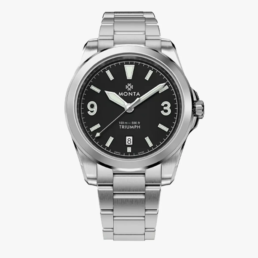 Monta Triumph V2 — переработанные пропорции, более смелый цифер и коронка под защитой: по сути, тот же надёжный «поле-вотч», но спортивнее. Официальная страница: Monta Triumph V2.