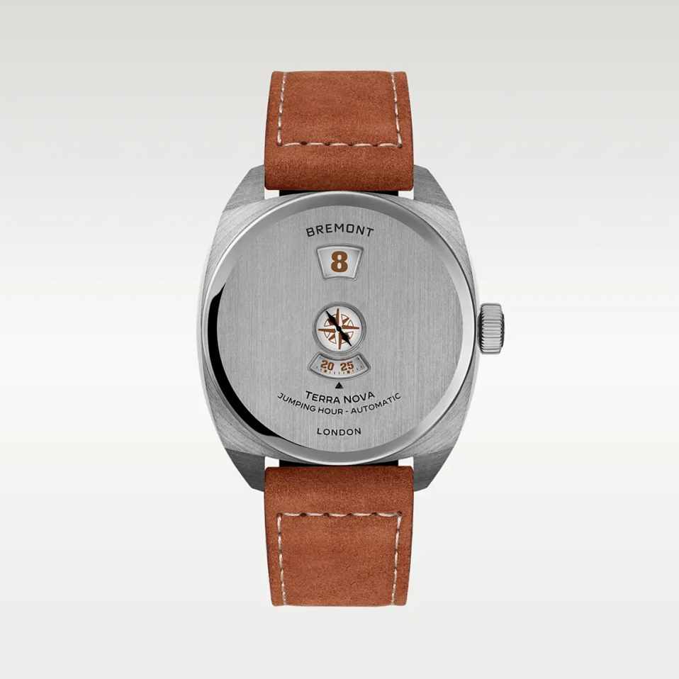 Bremont Terra Nova Jumping Hour (Steel) — «прыгающий час» в универсальном стальном корпусе Terra Nova с раздельными окнами показаний. Официальная страница: Terra Nova Jumping Hour Steel.