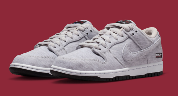 Dunk родился как баскетбольный силуэт в восьмидесятых, а затем оброс культовым статусом в скейтерской среде после появления линейки SB в начале нулевых. Классические версии славятся износостойкими материалами и хваткой подошвой — полезно для бордюров, граней и перил. На этот раз шаблон нарушили: вместо кожи выбран текстиль, напоминающий ткань базового свитшота из «средних рядов» гипермаркета.