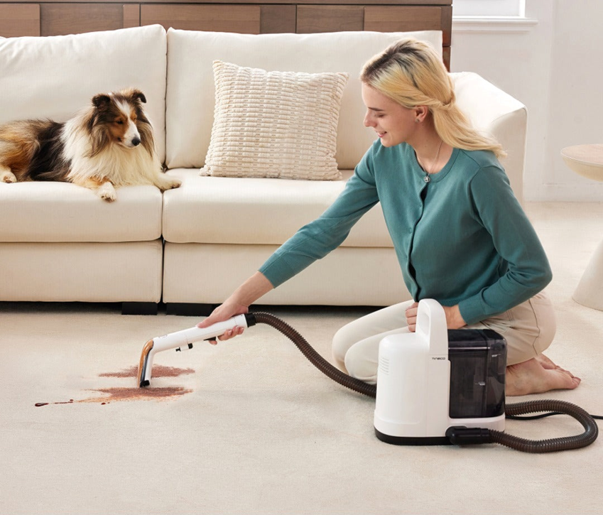 - Tineco iCarpet Spot — компактный проводной пятновыводитель. Постоянное питание от розетки, ограничение по длине шнура, зато нет забот с зарядкой. Подходит тем, кто готов тянуть кабель, но хочет стабильную мощность.