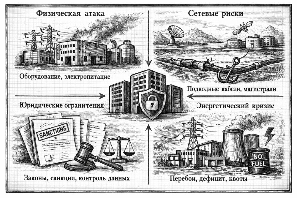 Любые попытки атаковать дата-центры, каналы связи, энергосистемы, кабельную инфраструктуру и смежные объекты незаконны и опасны. Материал носит только аналитический характер. При проектировании, эксплуатации и защите инфраструктуры нужно соблюдать применимое законодательство, включая требования России, и не использовать подобные знания для обхода ограничений, диверсий или вмешательства в чужие системы.