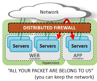 Из докладов партнеров мне, честно говоря, понравился только доклад представителя VMWare – остальные мне показались или слишком маркетинговыми, или слишком затянутыми в плане описания технических деталей.Технология NSX это технология виртуализации не отдельных машин, а целой инфраструктуры со всеми вытекающими отсюда плюсами. Автор презентации остановился на одном из плюсов – возможность использования в серверном сегменте, реализованным посредством NSX, распределенного межсетевого экрана.