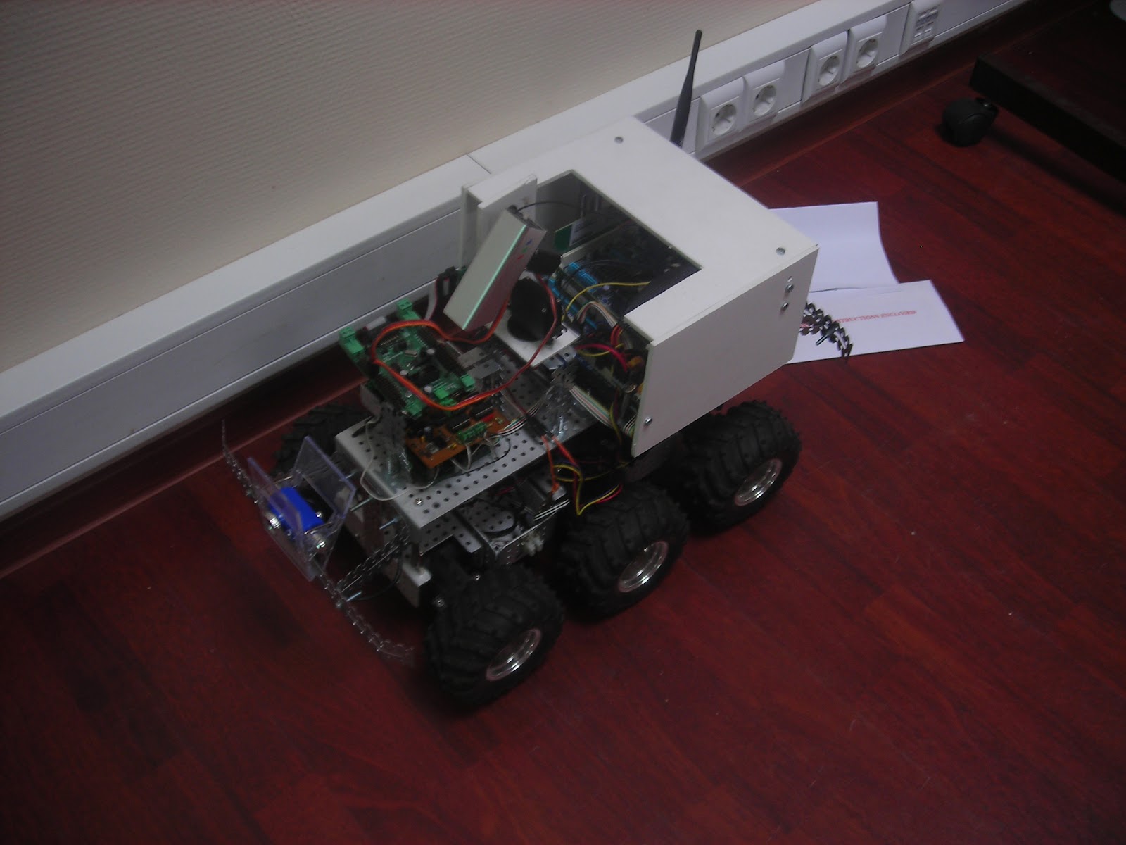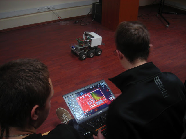 демонстрация робота охранника оснащенного двумя видеокамерами и управляемого на