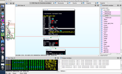 Вчера тихо и незаметно вышла обновленная версия наиболее часто используемой мной тулзы IDA Pro до версии 6.0. Самое большое нововведение этой версии заключается в том, что теперь мы имеем единый графический интерфейс на QT для Win/Mac/Linux платформ. И выглядит он даже удобнее прежнего + плюс еще была замечена более быстрая загрузка и скорость работы. Вот так оно выглядит на моем маке: