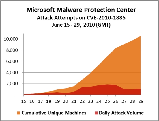 Так вот MS сегодня обнародовала цифры по количеству зафиксированных ими атак с использованием этой уязвимости, и они получились очень забавные: