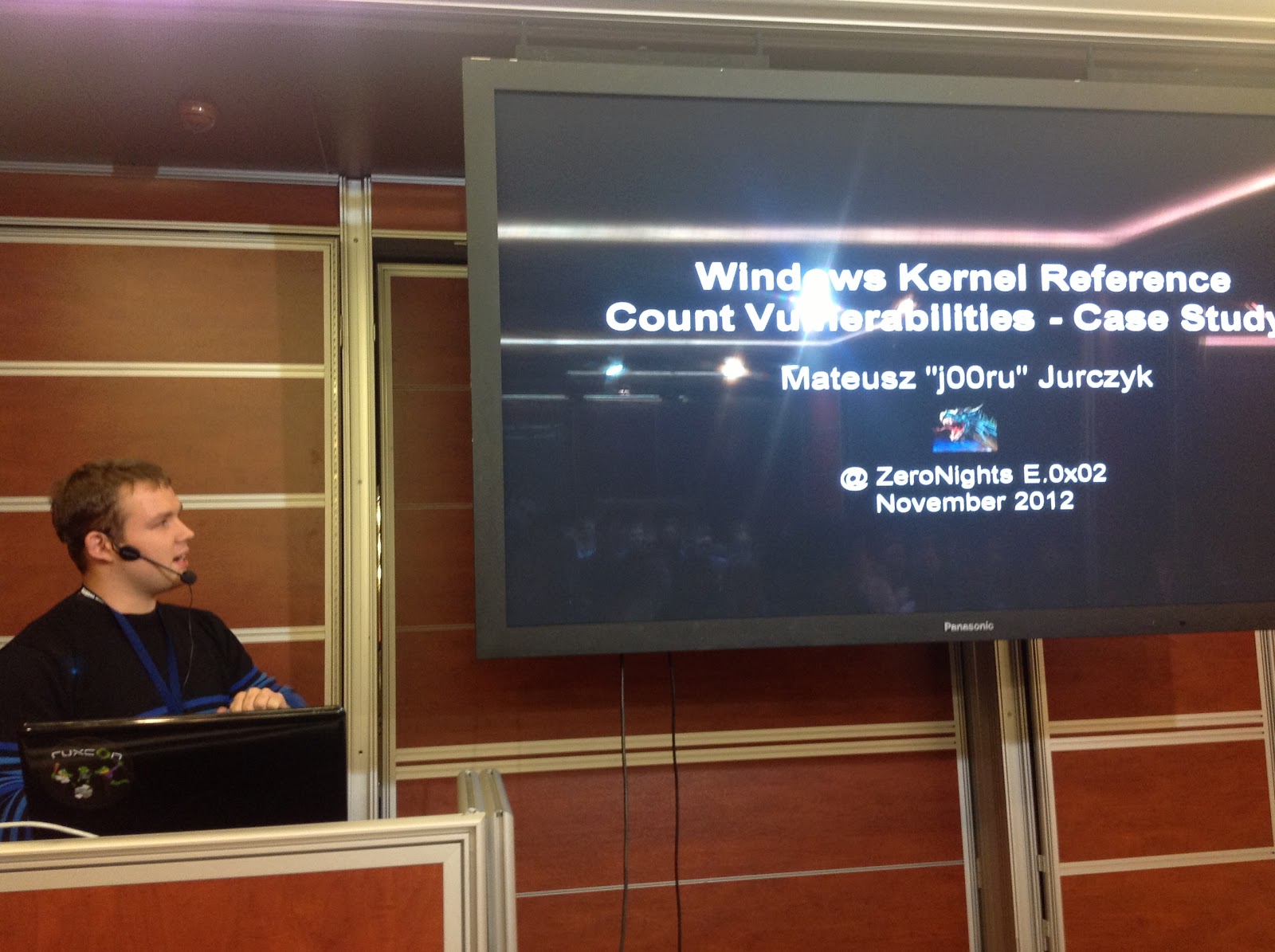 Сразу за Димой, был доклад "Уязвимости подсчета ссылок в ядре Windows: практический анализ" от . Собственно этот доклад я ждал больше всего, так как по прошлым выступлениям автора его слайды и статьи вызывали у меня большой интерес. В докладе прозвучал анализ большого количества векторов атаки на счетчики ссылок в ядре, а так же что не маловажно раскрыта сама природа подобного рода уязвимостей.
