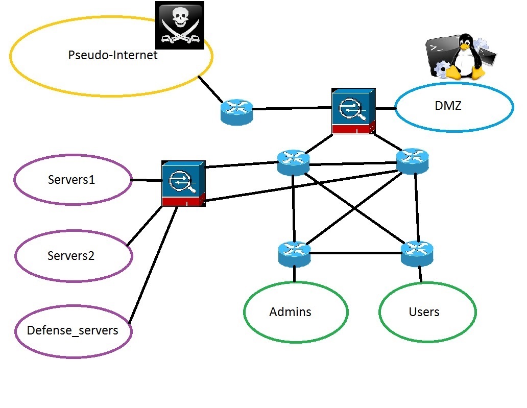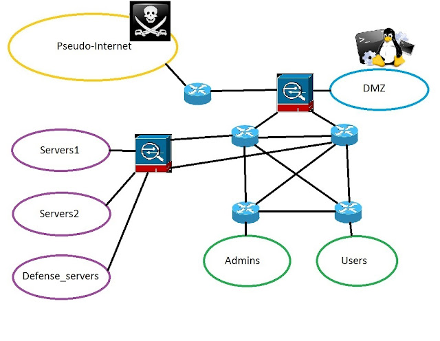 По задумке, реализованной в схеме сети, к серверам из DMZ хакеры попадали по всем протоколам и портам, проходя через пограничный firewall.