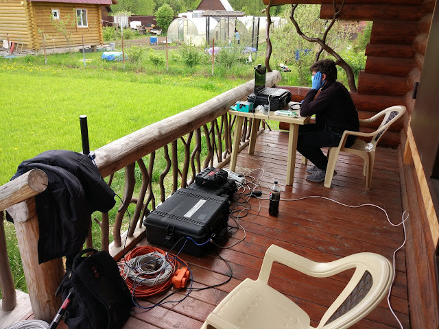 Инженер приехал на микроавтобусе с водителем, проверил, настроил, и в нужный час развернул свой ядерный чемоданчик с антеннами на полную мощь. И не обманули: намордник, варежки, антисептик - все при нем. Погода была хорошей, и в конференции я участвовал прямо с крыльца. Связь, которая в тот день на обычном голосе давала задержки, на полтора часа была превращена в сверхскоростной канал для видео. Я подумал было купить такой же усилитель для работы, но после того, как узнал его цену, понял, что могу и потерпеть.
