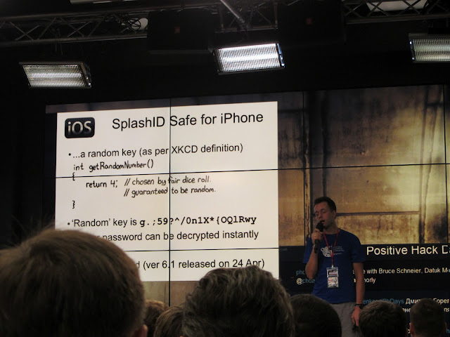 Кроме того, доклад Владимира Кочеткова был техничным и хорошим, и реально интересным. Так же были и другие интересные доклады от Сергея Щербеля, Мирослава Штампара, Дмитрия Склярова и Андрея Беленко, Федора Ярочкина и Владимира Кропотова, Александра Лямина (кстати, Александр потом рассказывал, что есть более интересная тема, про вынос nginx и предложил нам его на Zeronights. Я попросил рассказать детали, но Александр молодец - не сдал 0дэя и рассказал мне только про slowloris-подобие, но надеемся, что на ZN этот доклад все же состоится).