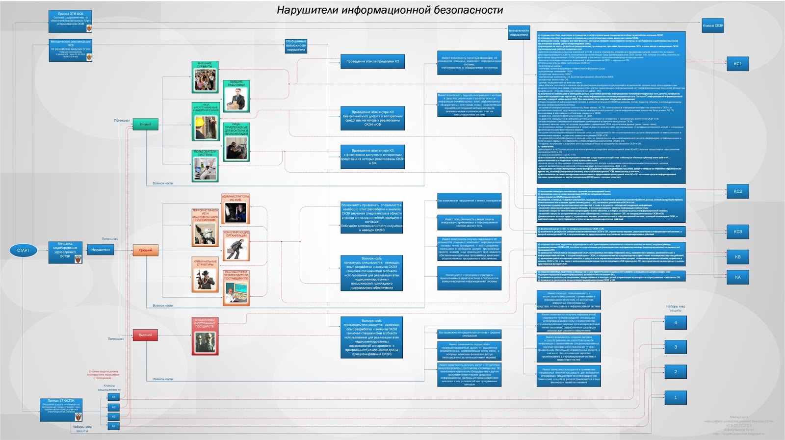 На карте представлены основные виды нарушителей, фигурирующих в нормативных документах ФСБ и ФСТЭК, а также их возможности по реализации угроз. По старой привычке, рисовал в Visio.