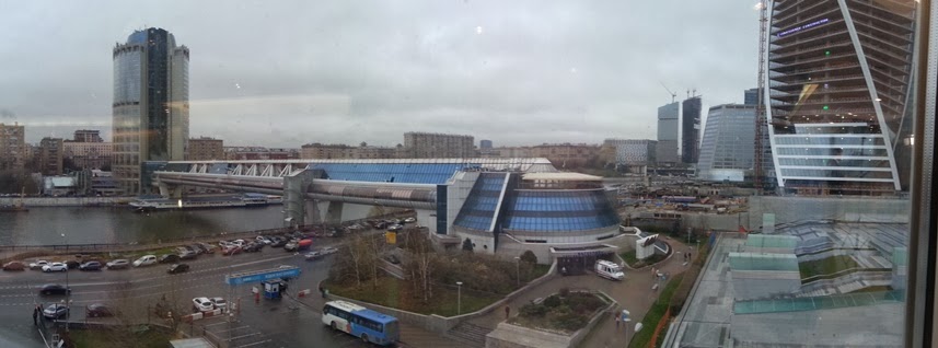 Далее было время обеда. Правда "обеда" в гастрономическом смысле, к сожалению, не было. Зато из окна Экспоцентра открывался неплохой вид.