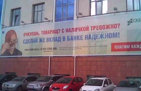 Ну, и напоследок, – совсем веселое. « Очкуешь, товарищ? С наличкой тревожно? Сделай же вклад в банке надежном!». С таким заманчивым предложением обратился в период финансового кризиса 2008 года к потенциальным клиентам «СКБ-банк», Территориальное управление ФАС креатив не оценило и квалифицировало его как нарушение части 6 статьи 5 закона «О рекламе»: использование бранных слов, непристойных и оскорбительных образов, сравнений и выражений.