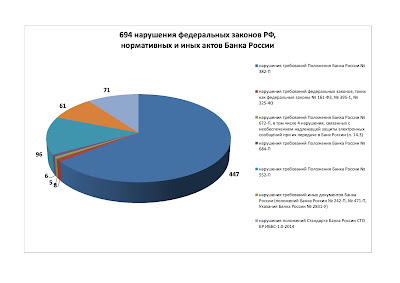1. По результатам указанных проверок выявлено 694 нарушения федеральных законов Российской Федерации, нормативных и иных актов Банка России: