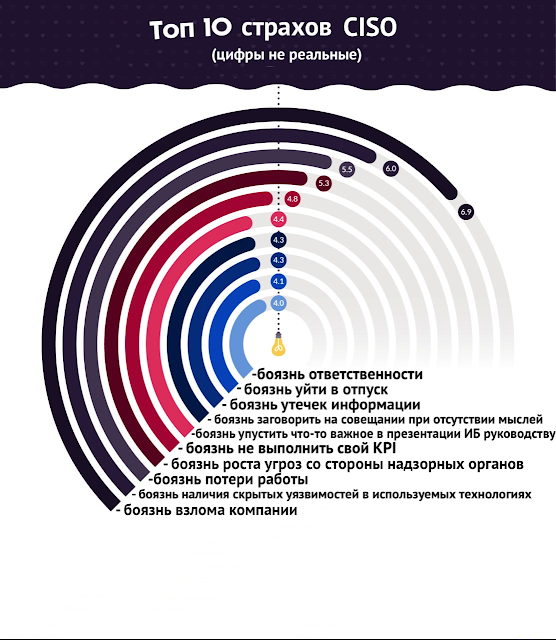 По причине скрытых уязвимостей в ИТ-инфраструктуре, и также из-за боязни потерять работу в случае попытки "расставить все точки над "i", ИБ вынужденно прикрывается уклончиво сформулированными служебными записками руководству, предупреждающими о существующих рисках. Это продолжается ровно до того момента, когда следует открыто и прямо признать некоторые шаги бизнеса вредными или недопустимыми с точки зрения информационной безопасности. Но до этого, как правило, не доходит.