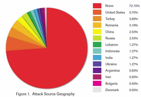 Рассматривая источники проведения атак на веб-приложения, в отчете приводятся следующие результаты: