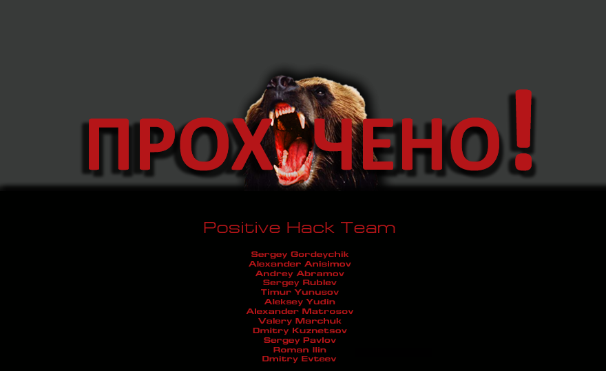 Подробное описание по всем заданиям CTF, описание хода соревнования в хронологическом порядке, видео-компиляции и фотоальбомы будут опубликованы в течение месяца.
