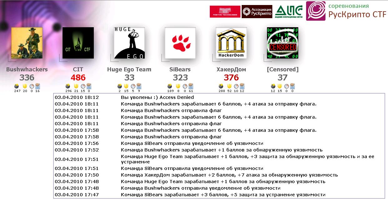 ТГУ) на последних минутах соревнования. Нужно сказать, что на протяжении всего состязания CTF наблюдалась активная борьба за второе и третье места. При этом команда CIT стабильно держала разрыв в 50-100 очков от ближайших к себе соперников, не позволяя даже приблизиться другим участникам к первому месту. name='more'>
