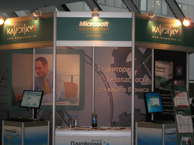 Сколько воды утекло с тех пор. И всегда приятно встретить до боли знакомый логотип компании, с которой когда-то начинался путь во взрослую жизнь. Рядом со стендом системного интегратора АйТи, располагался стенд Лаборатории Касперского, который был замечен на всех посещаемых мною мероприятиях за последнее время: