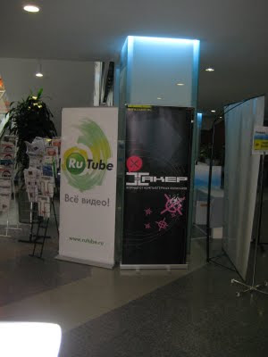 Уже на выходе, был замечен логотип журнала " Хакер", который почему-то располагался рядом с логотипом rutube...