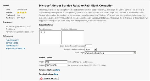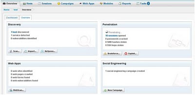 Такое событие ваш покорный слуга пропустить просто не мог. И сегодня остаток дня провел в красивой оболочке пробной версии Metasploit Pro (загрузка версии PRO доступна по ссылке). Что можно сказать про enterprise версию metasploit? Это нереально круто! Парни действительно постарались на совесть и реализовали достойную обертку ко многим возможностям консольного метасплоита. Таким образом, текущая реализация metasploit pro вполне способна в светлом будущем потеснить другие решения на рынке в этом направлении. Интерфейс PRO-версии разработан в лучших традициях WEB 2.0 Т.е. можно смело утверждать, что эксплоитинг стал доступен простым домохозяйкам :)