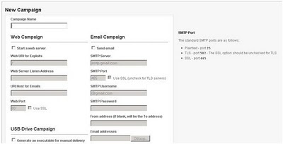 Доступен приятный интерфейс для работы с модулем SET (social engineering toolkit).