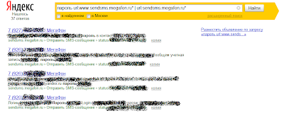 Занятная утечка сегодня просочиласьв паблик. Дело в том, что в кеш поисковой машины Яндекспопала часть сообщений сотового оператора Мегафон, отправленные через веб-морду www.sendsms.megafon.ru.
