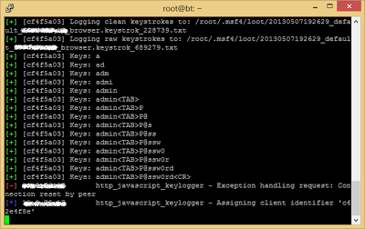 Аналогичным путем можно также зацепить перехват нажатий на клавиатурес использованием msf (ровно как отчаянный сценарий с browser autopwn).