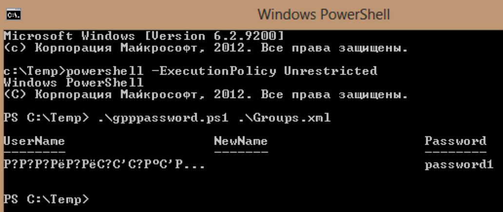 Задача файла аналогична предыдущему решению - запуститься на всех рабочих станциях домена с правами системы и установить хардкоженный пароль. Разумеется такой способ ротации пароля локального администратора кажется диким, однако ваш покорный слуга даже сегодня встречает подобное творчество в крупных гетерогенных сетях.