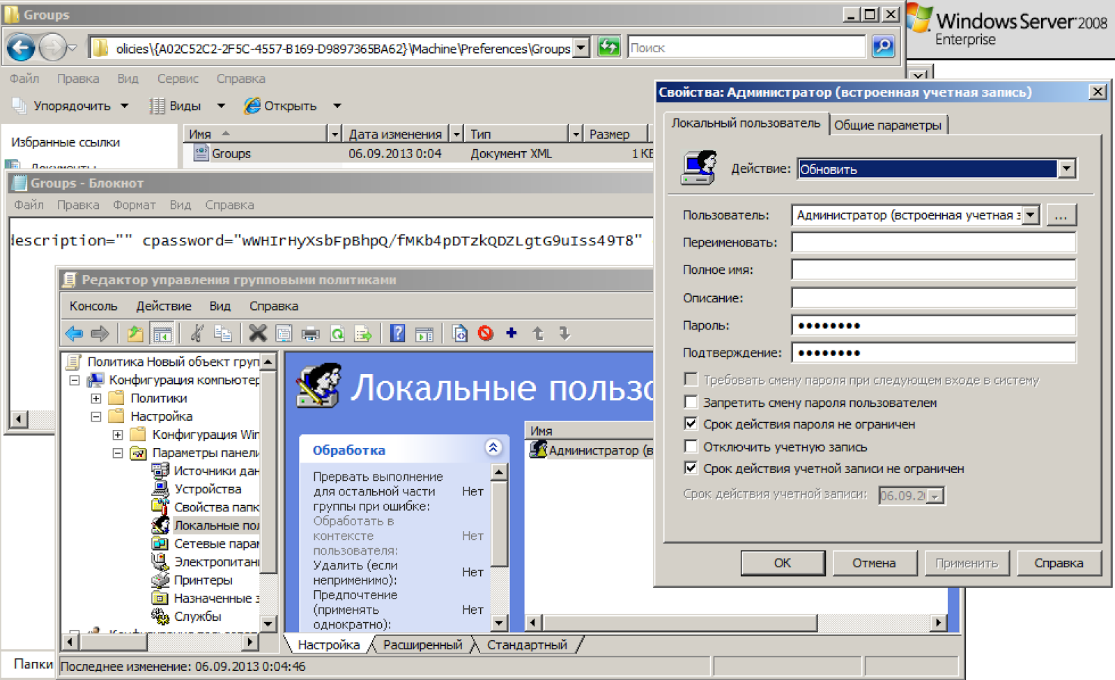 Но шутникам из MS этого показалось мало. А потому в windows server 2008 появляется возможность "безопасной" ротации паролей локальных пользователей домена, прям из интерфейса управления групповыми политиками:
