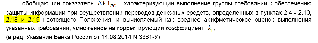 + полностью учитывает требования Указания ЦБ 3361-У; + для удобства восприятия изменены формулировки большей части требований. Убрана "преамбула" "Оператор по переводу денежных средств, оператор платежной системы, оператор услуг платежной инфраструктуры .... ", в которой нет больше необходимости, так как в файле есть выбор типа субъекта ПС; + ещё пару мелочей.