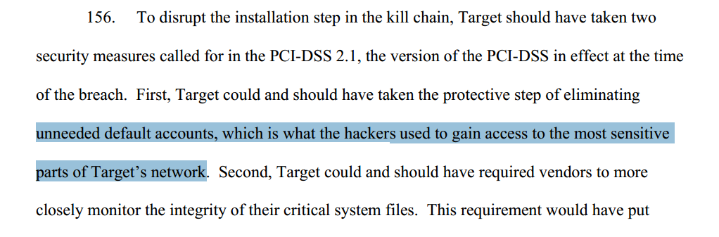 Target знала о гипотетической возможности подобного взлома, существовали требования и рекомендации регуляторов, которые позволили бы избежать утечки, компания была оснащена необходимыми средствами защиты информации и инвестировала деньги в создание СИБ.