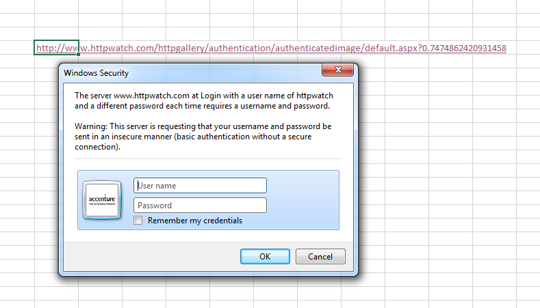 На встрече DefconMoscow в Mail.ru Тимур Юнусов рассказал ещё один трюк. Если в excel-файл вставлен линк на внешний ресурс, подконтрольный злоумышленнику, который требует авторизации, то Excel так же высветит стандартное окно http basic авторизации, вставив в окошко даже корпоративное лого для успокоения пользователя. Введенный логин и пароль достанутся в открытом виде злоумышленнику.