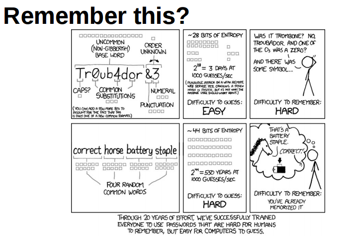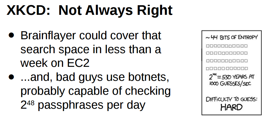 Да и в целом 48 бит энтропии, о которых говорит автор выше - это латинский пароль, составленный из случайных строчных букв, длинной 10 символов. Сегодня мы можем считать такой пароль небезопасным :(.