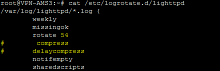 Теперь каждую неделю рабочий файл /var/log/lighttpd/lighttpd.log будет переименовываться в lighttpd.log.1 и система будет создавать новый файл для логов. Всего логи будут храниться 54 недели.