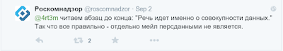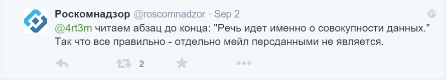 Но что делать, если мой ящик содержит имя и фамилию? Что делать, если я этот ящик не выбирал, мне его дали на работе, и он меня 100% идентифицирует? Считать ли анонимным сообщение, к примеру, "a.zharov@rkn.gov.ru взяточник и коррупционер!"? Сегодня почтовый ящик - это сердце электронной личности человека, так как через него можно получить доступ ко всем аккаунтам, личным фотографиям и видеороликам, сканам паспортов близких, мед.справками так далее.