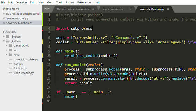 Толком осилить PowerShell я не смог, поэтому написал своеобразный конвертер, который позволяет мне запускать павершел скрипты из питона и работать с выводом. Так оказалось намного удобней.