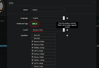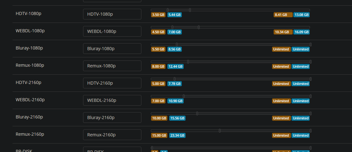 Важно настроить миниальные размеры файла для каждого формата, иначе радарр начинает качать 4к раздачи по полтора Гб.