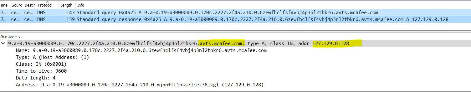 Началось все с того, что у разработчиков возникли проблемы с использованием доверенного сертификата в MS VisualStudio, поэтому они решили использовать самоподписанный сертификат для подписи кода. МакАфии нельзя забирать файлы из корпоративной сети, можно только проверят хэши в облаке (кстати делает он это через DNS. Ответы приходят закодированными в IP адрес из локального диапазона 127.0.0.0/8)