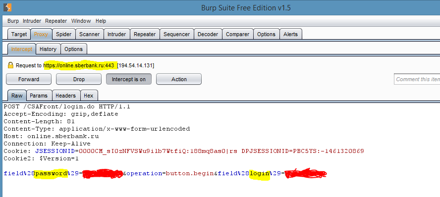 Обновляем виджет и любуемся на открытые пароли (ну то есть я на них любуюсь. У вас они замазаны красной ручкой).Burp налету подменил https сертификат Мегафона на свой собственный, и мы таким образом получили возможность видеть трафик в открытом виде.