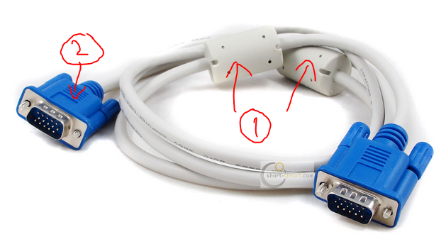 Закладка устанавливается в разрыв красной жилы VGA кабеля вот здесь:
