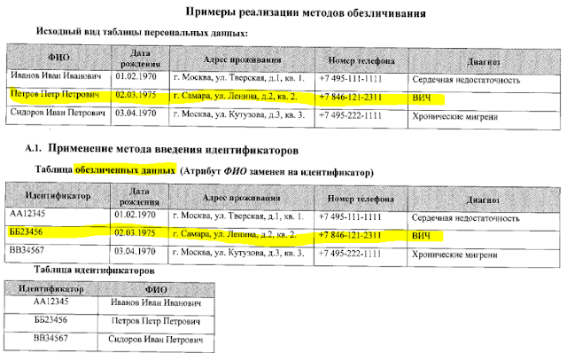 Сведения из таблицы А.1. - это теперь обезличенныеданныепо версии Роскомнадзора. Это НЕ персональные данные, и в общем случае оператор даже не обязан их защищать. То есть домашний адрес и личный телефон больного СПИДом - это теперь "статистическая" информация.