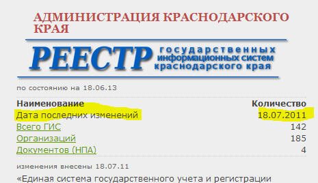 Возьмем, к примеру, реестр государственных информационных систем Краснодарского края.