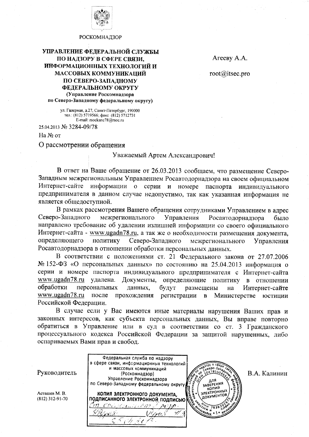 В обоих случаях паспортные данные были удалены. Ространснадзор по КК получил ещё и штраф по ст. 13.11 КоАП за нарушение норм обработки персональных данных. Питерский Ространснадзор штраф почему-то не получил. Ну и ладно.