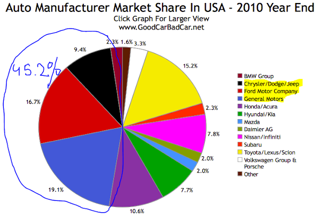 Штаты проиграли автомобильную войну Японии и Китаю. Будучи первой автомобильной державой в мире, США за полвека уступили пальму первенства Японии и сами стали крупнейшим рынком автопродукции для иностранных держав. Сегодня большая половина автомобилей в Штатах выпущено под иностранными брендами.