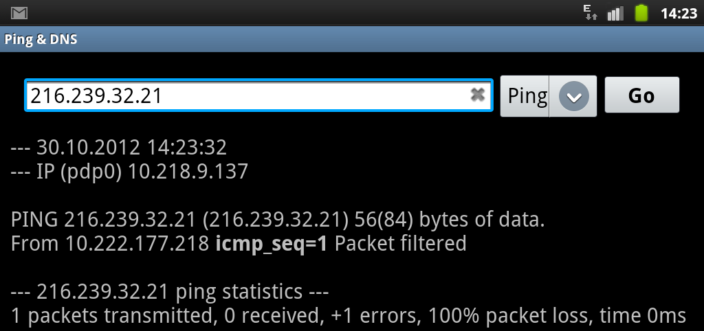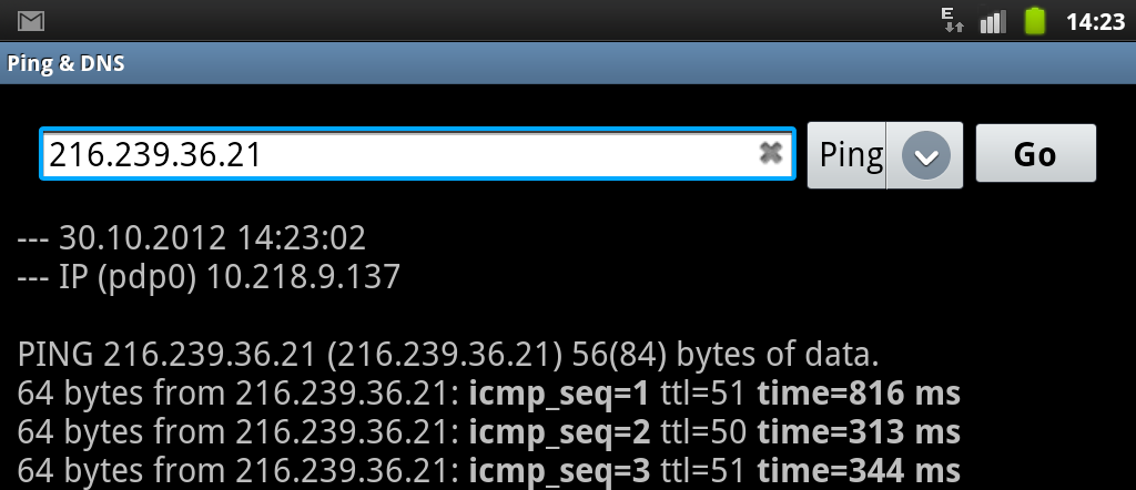 Тогда я решил пингануть IP адреса Blogger чезер 3G от Мегафона: