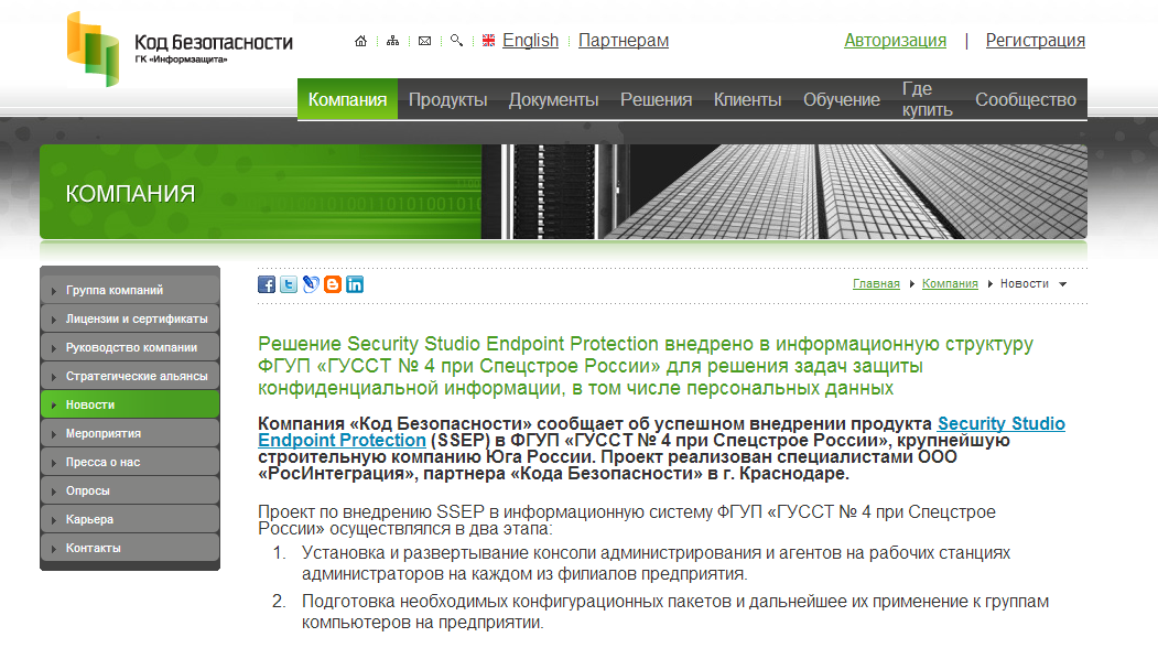 Компания "Код Безопасности" (ГК Информзащита) - это ведущий производитель средств защиты информации в России. Соболя, Континенты или SecretNet'ы используются, наверное, в каждой более или менее крупной организации в стране.