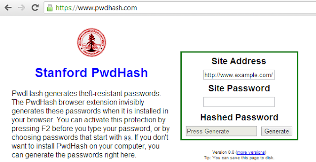 Затем вбить любимый пароль и PwdHash сам преобразует его в хэш-пароль.
