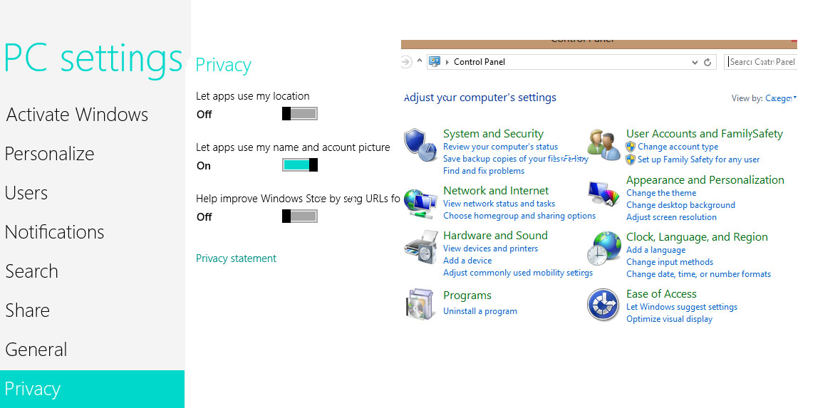 В результате у нас 2 рабочих стола, 2 типа приложений, 2 панели управления с настройками и т.д.