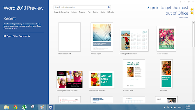 На прощание пару скриншотов нового Microsoft Office 2013, который стоит ждать так же в октябре. Тут вроде бы тоже без революций (даже формат документов не поменяли =)).