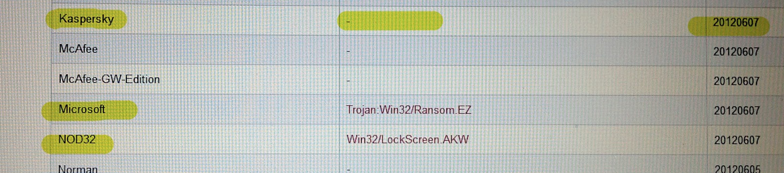 1. сайт поможет определить антивирус, который умеет находить этот вирус (т.к. мы по-прежнему точно не знаем как вирус попал на ПК);